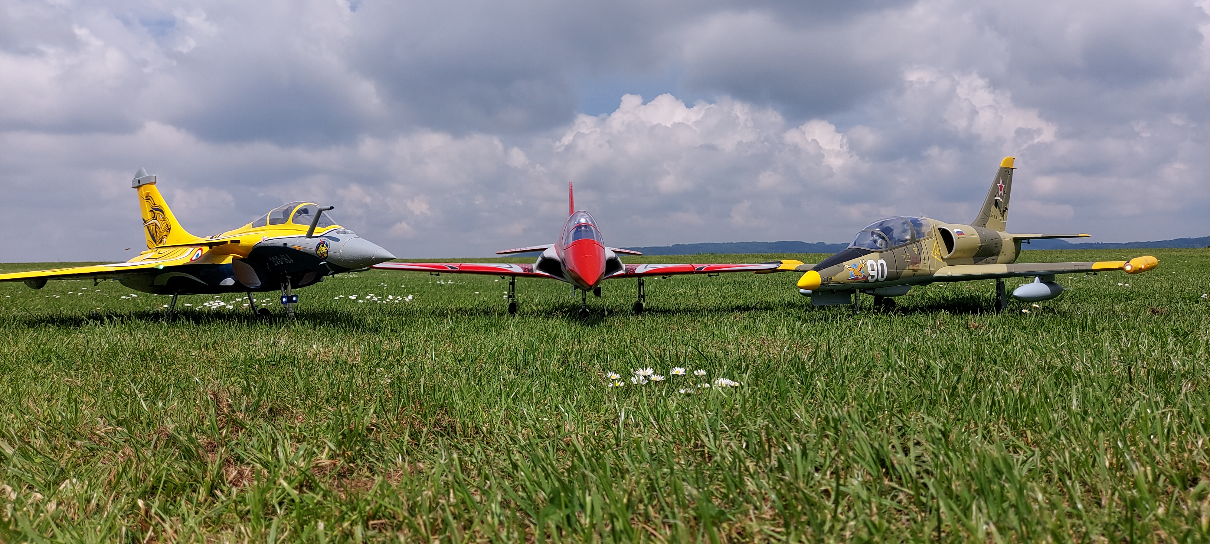 Eine Auswahl unserer Jets: Rafale, Viper und L39 Albatros (v. l.n.r.)